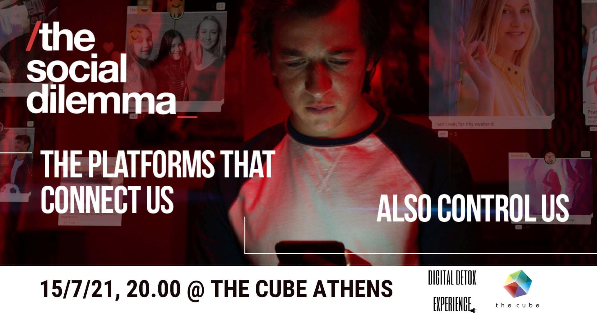 Την Πέμπτη 15 Ιουλίου 2021, στις 20.00, στην ταράτσα του The Cube Athens παρακολουθούμε και συζητάμε την αμφιλεγόμενη ταινία του Netflix, "The Social Dilemma". Οι "ειδικοί" πίσω από τις μεγάλες εταιρίες όπως το Facebook και το Google εξηγούν πως λειτουργούν οι αλγόριθμοι των social media και μας δείχνουν το δρόμο για την ισορροπημένη χρήση. Ποιοί προβληματισμοί προκύπτουν σε σχέση με την ασφάλεια μας; Επιλέγουμε τελικά τι βλέπουμε; Είμαστε προϊόντα ή χρήστες;